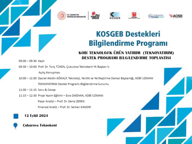 “KOBİ Teknolojik Ürün Yatırım (TEKNOYATIRIM) Destek Programı Bilgilendirme Toplantısı”, 12 Eylül 2024 tarihinde Çukurova Teknokent’te gerçekleştirildi. Toplantı…