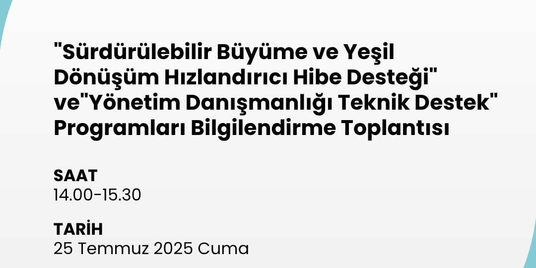 Çukurova Teknokent’te, “Sürdürülebilir Büyüme ve Yeşil Dönüşüm Hızlandırıcı Hibe Desteği” ile “Yönetim Danışmanlığı Teknik Destek” programları kapsamında bilgilendirme toplantısı düzenlenecektir.