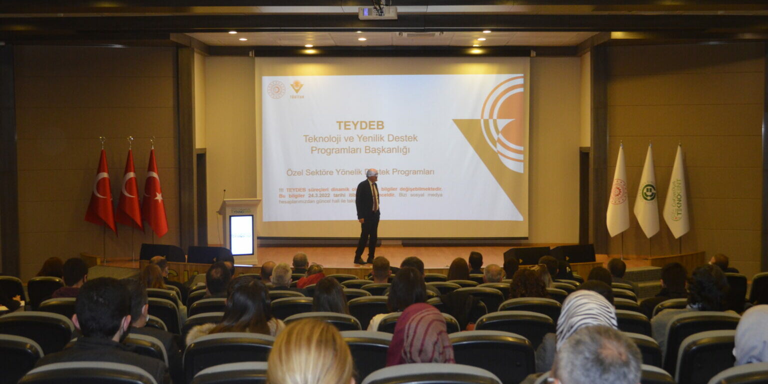 TÜBİTAK TEYDEB Başkan Yardımcısı Dr. Hasan Selçuk Selek’in gerçekleştirdiği TEYDEB Destekleri Bilgilendirme Semineri Çukurova Teknokent Konferans Salonunda düzenlendi. ArGe firmalarının, akademisyenlerin, girişimcilerin ve girişimci adaylarının katıldığı seminerde, Sayın Selek TEYDEB Destek Programları hakkında detaylı bilgilendirme yaptı.